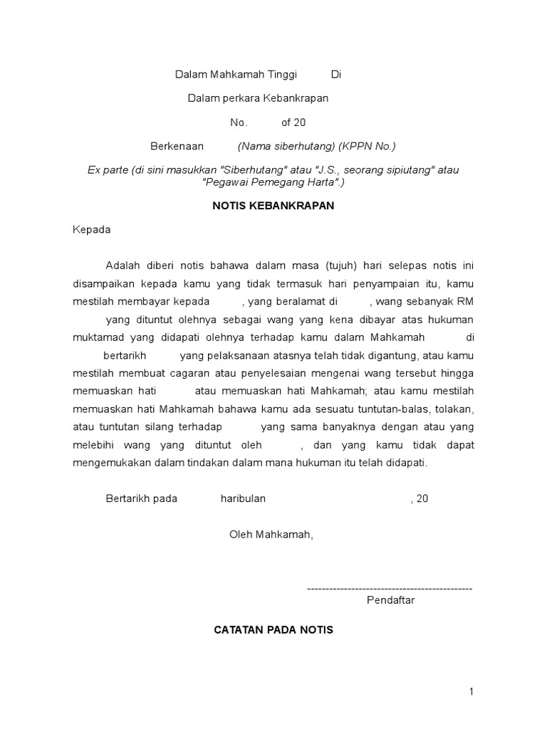 You can only claim interest if you are entitled to it A bankruptcy proceeding can also be brought against a minor i was declare bankrupt some 20 years ago without my knowledge when i was a citizen of malaysia. However, malaysia airlines bhd (mab) said the notice is unrelated to its current restructuring exercise. You must prove that you are in fact a the trustee managing the assets requires the proof. Uncapitalised interest is any interest due on your debt up to the date of insolvency which is not principal debt.
