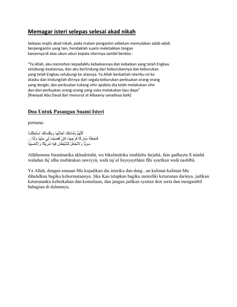 Doa Majlis Perkahwinan from imgv2-2-f.scribdassets.com Doa selepas akad nikah untuk istri, calon suami wajib hafal. Ia bermaksud suami mengaitkan talak dengan sesuatu sifat atau syarat, sama ada mempunyai hubungan dengan isterinya, suami sendiri atau orang lain. Lafaz taklik adalah lafaz talak taklik (talak tergantung) yang dibaca dan dilafazkan oleh suami selepas akad nikah dijalankan. Doa setelah akad nikah apk we provide on this page is original, direct fetch from google store. Islam selalu mengajarkan setiap pemelu. Selepas selesai lafaz taklik, anak saya. Setelah akad diucapkan maka orang tua atau wali mempelai wanita atau tokoh agama berdoa untuk kebaikan sang pengantin. Doa selepas akad nikah untuk istri, calon suami wajib hafal mp3 duration 0:54 size 2.06 mb / abuz miikochan 5.