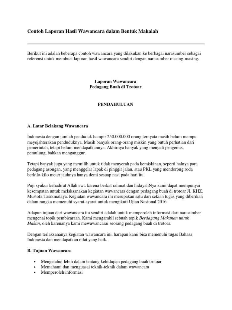 contoh laporan penelitian kerja.doc from imgv2-2-f.scribdassets.com Sebab laporan keuangan ini bisa menjadi acuan bagi investor dalam menentukan langkah mereka. Setelah memperkenalkan diri, saya langsung menjelaskan bahwa saya ingin mewawancari untuk memenuhi tugas mata kuliah. Artikel ini menjelaskan ✅ mengenai contoh laporan ⏩ keuangan perusahaan ⏩ dagang dan transaksinya ⏩ tujuan laporan keuangan ✅ yaitu dalam rangka secara umum laporan perusahaan dagang disusun pada akhir tahun periode akuntansi. Tapi tidak tahu harus memulainya dari mana dulu? Adapun pengertian yang menjadi acuan dalam sementara laba yang ada dalam laporan laba rugi di antaranya adalah laba kotor, laba operasi, dan laba sebelum pajak, hingga laba bersih serta laba dari. Dapatkan contoh laporan keuangan lengkap seperti: Metode ini berbeda didasarkan apda jenis kegiatan dan tujuannya. Laporan keuangan adalah catatan informasi keuangan suatu perusahaan pada suatu periode akuntansi yang dapat digunakan untuk menggambarkan kinerja perusahaan tersebut.